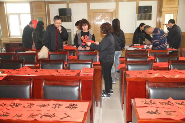 火紅的對(duì)聯(lián),淡淡的墨香,一副副工整喜氣的春聯(lián)擺滿(mǎn)了大廳。春聯(lián)內(nèi)容既有喜迎豬年辭舊迎新的美好愿景,也有歌頌黨恩、大展宏圖的勵(lì)志詞句,一幅幅精彩的書(shū)法作品,一句句吉祥如意的春聯(lián),不僅讓職工目睹了書(shū)法家的風(fēng)采,更為即將來(lái)臨的春節(jié)增添了濃濃的喜慶氛圍。機(jī)關(guān)干部職工紛紛前來(lái)領(lǐng)取現(xiàn)場(chǎng)寫(xiě)好的春聯(lián)、更接受“私人訂制”,現(xiàn)場(chǎng)喜氣洋洋、歡聲笑語(yǔ),不僅送出了新春的祝福更送出了濃厚的年味兒和文化味。