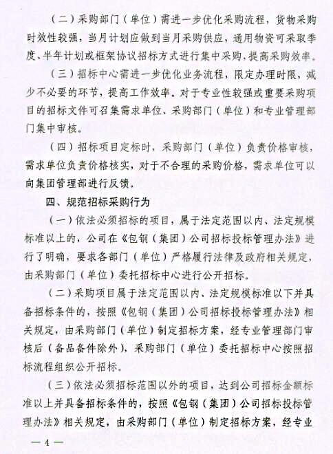 關(guān)于印發(fā)《包鋼(集團(tuán))公司關(guān)于進(jìn)一步強(qiáng)化采購(gòu)招投標(biāo)管理實(shí)施辦法(試行)》的通知